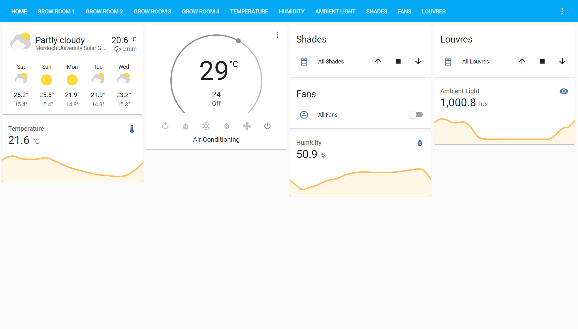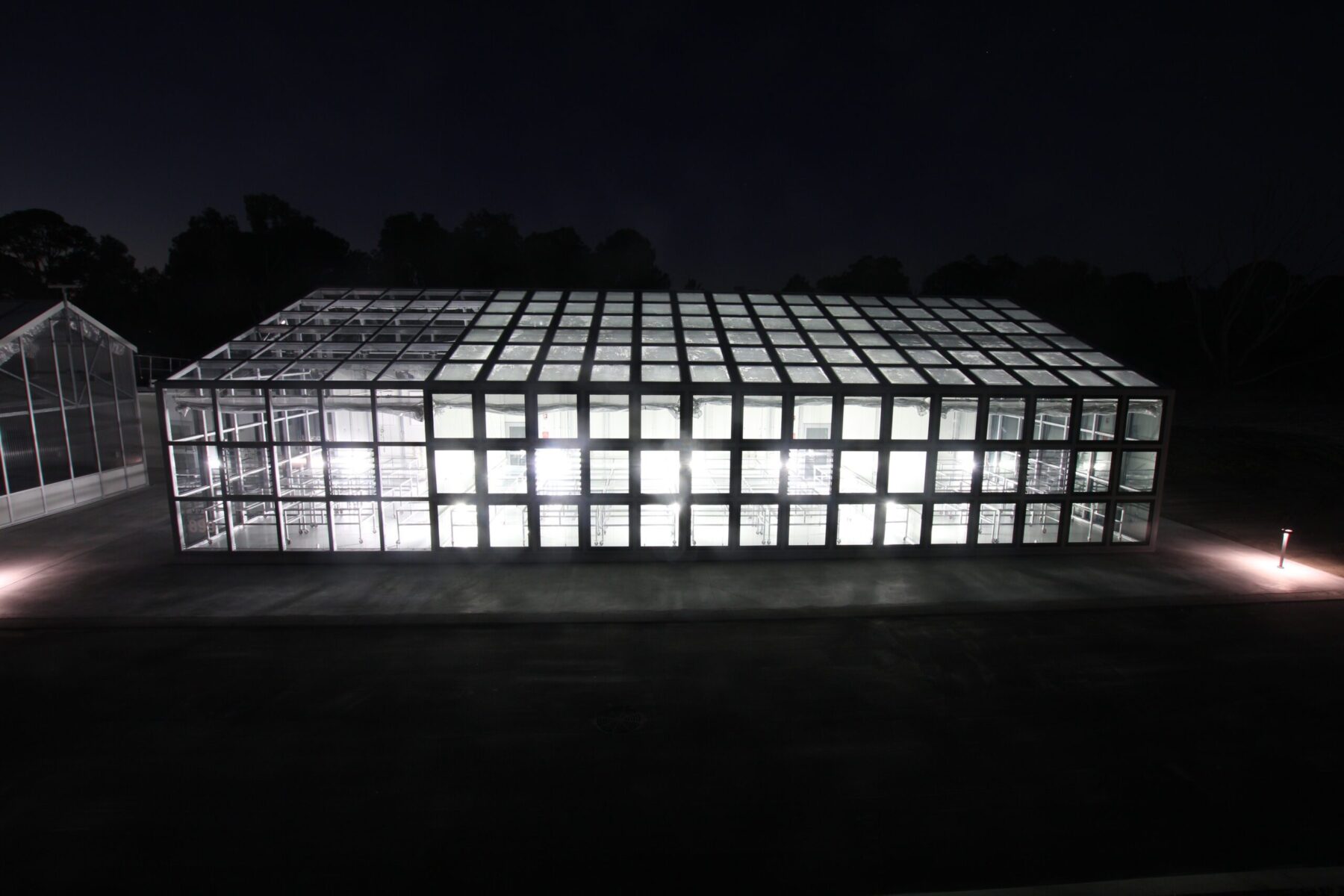 Partially funded by a AUD$1.6 million grant from the Australian Federal Government’s AusIndustry Cooperative Research Centres Projects (CRC-P) program and built by Ryan Winston of blanc. Construction, the greenhouse incorporates a range of sensors that record and present an array of data in real time, providing scientists with accurate information relating to conditions like temperature, humidity and the actual amount of light that plants are receiving.